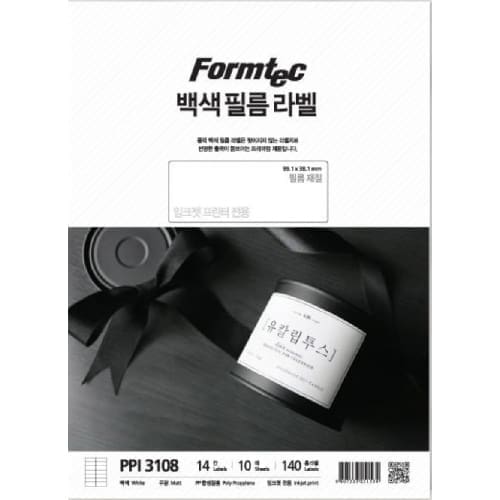 폼텍 백색필름 라벨지 14칸 PPI-3108 잉크젯 프린터전용 / 99.1*38.1mm/10매