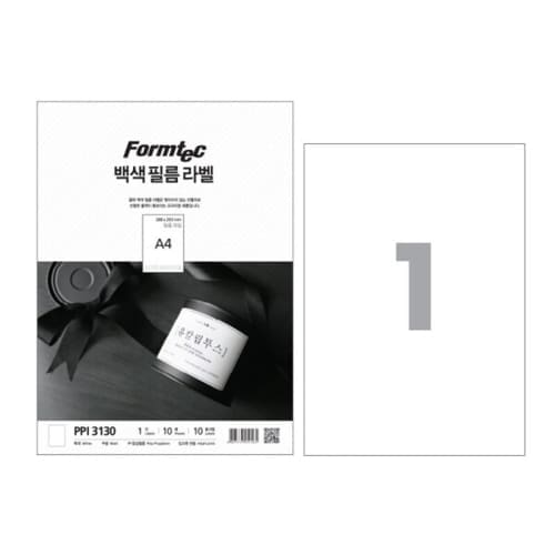 폼텍 백색필름 라벨지 1칸 PPI-3130 잉크젯 프린터전용 / 208*293mm/10매
