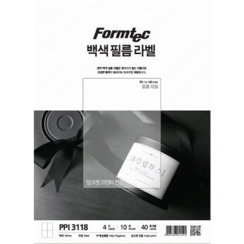 폼텍 백색필름 라벨지 4칸 PPI-3118 잉크젯 프린터전용 / 99.1*140mm/10매