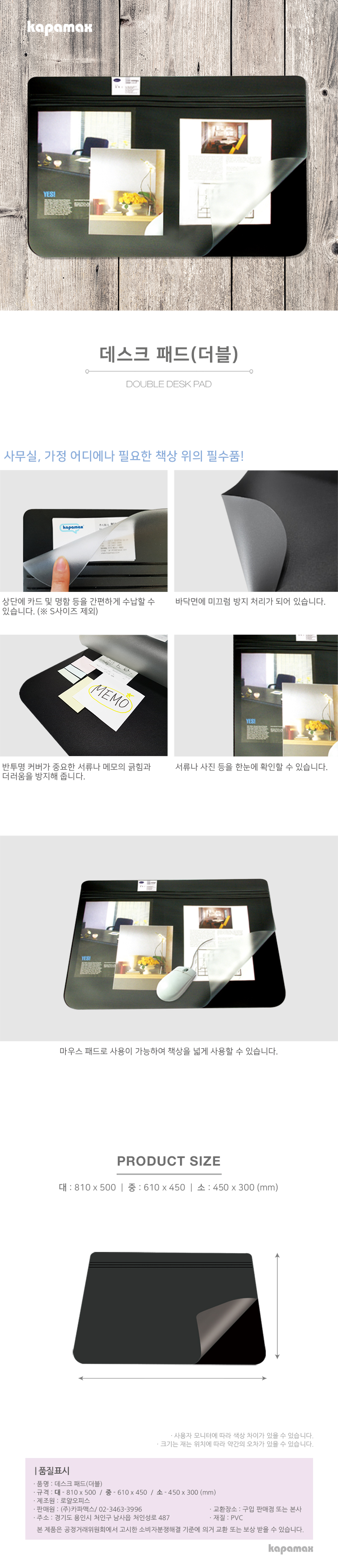 카파맥스 데스크패드 더블 중 05063 / 610*450mm