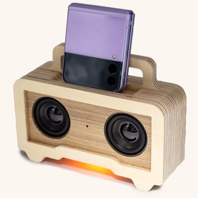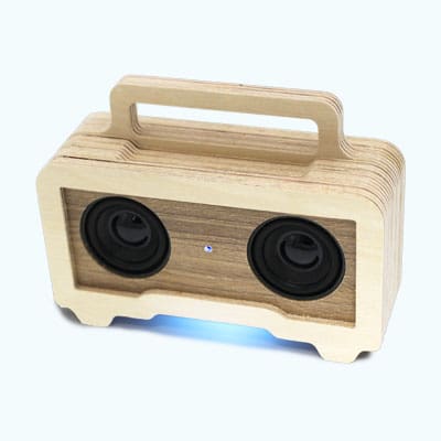 12mm 자작나무 합판과 3mm 무늬목 MDF, 블루투스 엠프모듈, 스피커 유닛, C타입 충전 회로보드 등을 이용해 만듭니다.